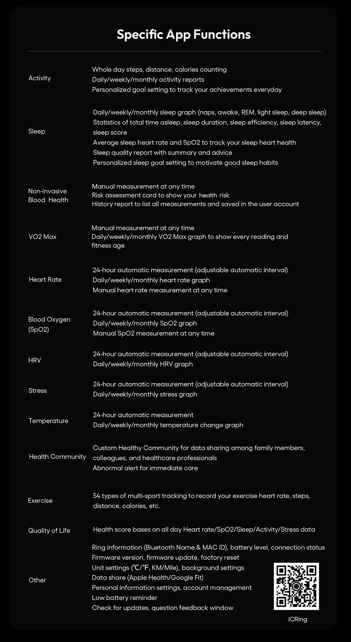The JCRing X3B is a highly advanced health monitoring system— a wearable smart device that's not just a ring, but integrates a wide range of biometric and lifestyle metrics, and is stylish.